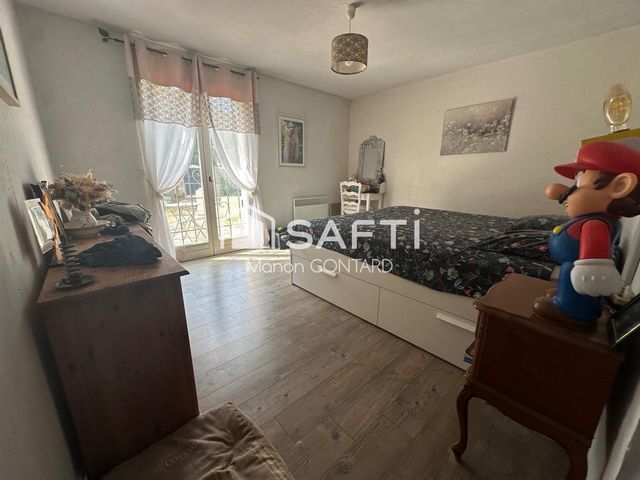 Vous serez accueillis par un séjour lumineux de 45 m² avec cuisine ouverte, cheminée et climatisation réversible. La partie nuit se compose de 4 chambres, d’une salle d’eau pratique, ainsi que de deux terrasses orientées sud et nord. Un cabanon et un portail électrique complètent les prestations.