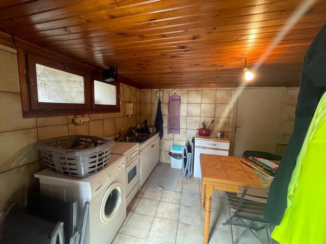 La maison est équipée d'une cheminée dans le salon ainsi que d'un poêle a granule dans la cuisine.
