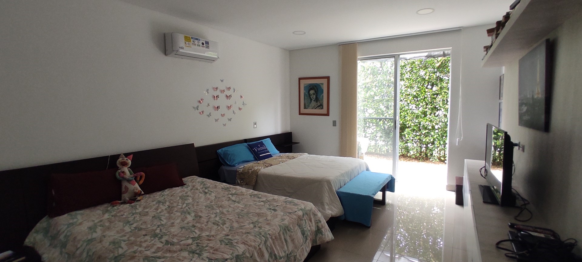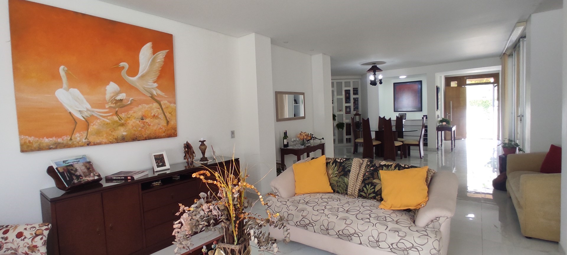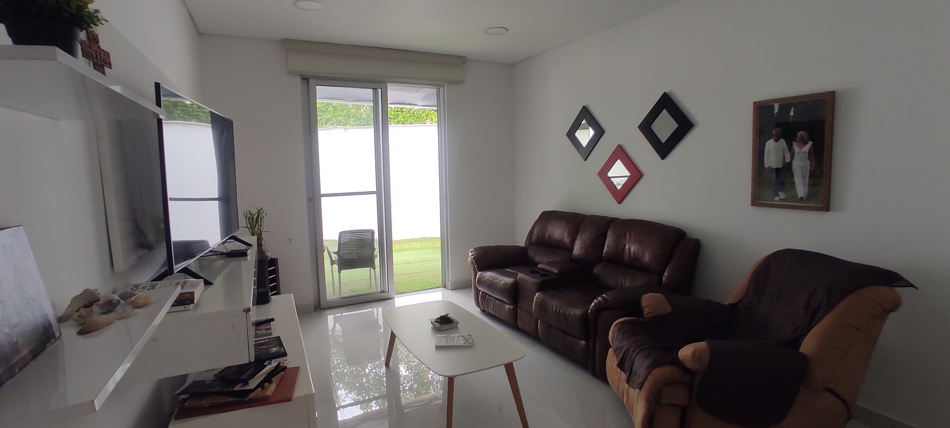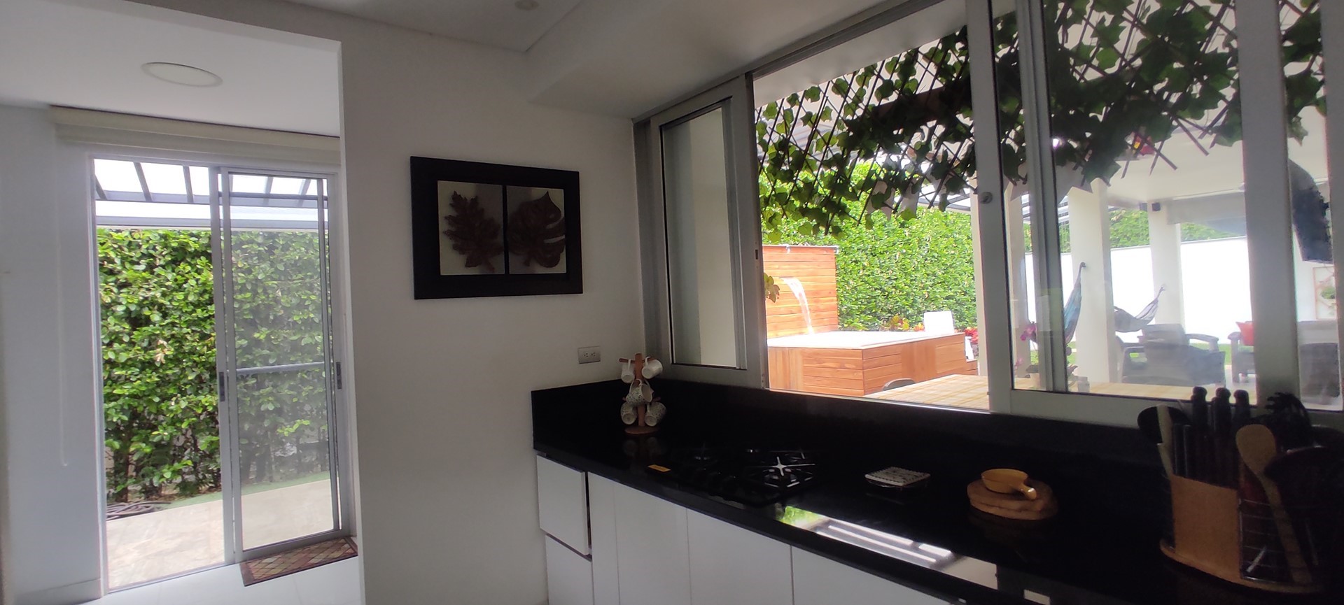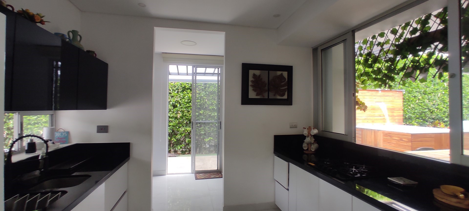 Property-15729 For sale Country House with one Floor in Valle Verde Jamundí, beautiful, comfort and elegance, bright and fresh, surrounded by green areas. Three bedrooms with ensuite ,Dressing room and window door to the green ,Family Room, elegant and luxurious modern living room and dining room. Minimalist kitchen, trade area, terrace, jacuzzi, parking for two cars, storage, surrounded by nature, wonderful view of the cliffs. Amenities in the condominium, pool, soccer fields, tennis, ecological trail and lake.
