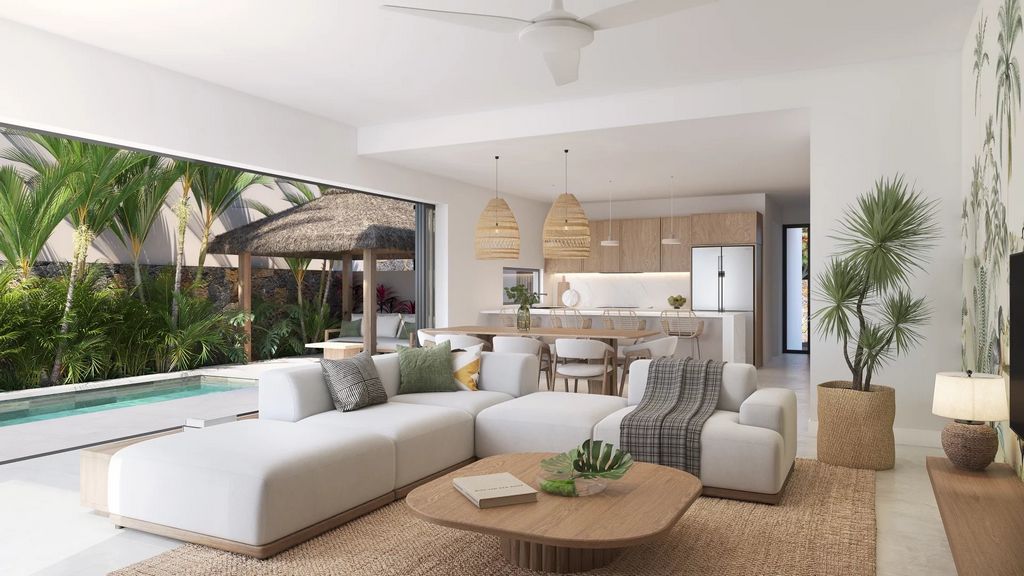- Garden MKV322 MyKeys Realty presents for sale the 3-bedroom villas of this new PDS project accessible to foreigners located in Calodyne, north of Mauritius. This secure residence with its modern architecture features well-designed, user-friendly interiors. The project's concept also emphasizes the outdoors, with a bright living space extending onto a large covered terrace overlooking the deck, pool and carefully planted garden. The sumptuous new 267 m2 villas offer cozy, intimate living spaces with high-quality features and a private 264 m2 garden. Each villa faces the 2000m2 communal green space, bringing even more greenery and freshness to this verdant environment. This villa project is undeniably a haven of peace where residents can relax and enjoy the spa that is also part of the project. As the proud owner of one of these villas, you'll have access to private parking for 2 cars, the spa and the residence's communal swimming pool. All close to amenities, just a 15-minute drive from the center of Grand Baie and 6 minutes from the nearest beach. Contact us to find out more about this new opportunity!