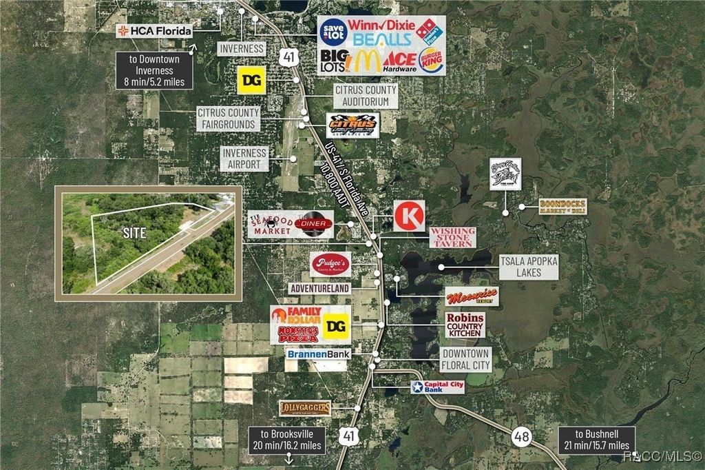 En el condado de Citrus, Florida, esta parcela de 3.19 acres ofrece una oportunidad única de asegurar terrenos comerciales con alto potencial de desarrollo. Zonificado GNC (General Neighborhood Commercial), el sitio cuenta con aproximadamente 620 pies de frente directo en la autopista US 41, con un conteo de tráfico de aproximadamente 18,200 AADT, y disfruta de un acceso completo de corte de mediana que se adapta a los flujos de tráfico en dirección norte y sur. Esta zonificación comercial de alta intensidad permite una amplia variedad de usos, incluidos comercios minoristas, centros comerciales, consultorios médicos y profesionales, gasolineras/estaciones de conveniencia y reparaciones de automóviles o marinas. Además, el sitio admite el desarrollo multifamiliar de hasta 10 unidades por acre, dependiendo de la aprobación de PUD, lo que lo convierte en una opción de inversión muy versátil. La topografía se está deslizando suavemente con la mayoría de las áreas edificables colocadas por encima de la elevación de inundación base (BFE 29.3 '), lo que minimiza la preparación del sitio y los posibles costos de relleno: los datos GIS indican que partes del sitio superan los 37' de elevación. La propiedad está ubicada en el centro con fácil acceso a los mercados de crecimiento circundantes: Lecanto (17 millas), Beverly Hills (20 millas), Crystal River (24.5 millas) y Homosassa (20 millas). Se proyecta que el condado de Citrus, hogar de 153,600 residentes, crezca a 350,000 para 2030, impulsado por inversiones estratégicas en infraestructura como la extensión de Suncoast Parkway de $ 135 + millones que mejora la conectividad regional y posiciona a Citrus como una puerta de entrada clave a Tampa-St. El área metropolitana de Petersburg-Clearwater, la 18ª MSA más grande de los EE. UU. A menos de 15 minutos en automóvil, el sitio atiende a una población de 17,551 residentes con un ingreso familiar promedio de $ 53,000 y una edad promedio de 61.2 años, alineándose con la demanda de servicios esenciales, desarrollo médico y minorista. Con su visibilidad privilegiada de la US-41, flexibilidad de zonificación, topografía favorable y acceso a una base de población en rápida expansión, esta parcela ofrece una oportunidad de desarrollo única y asequible en una de las regiones de más rápido crecimiento de Florida.