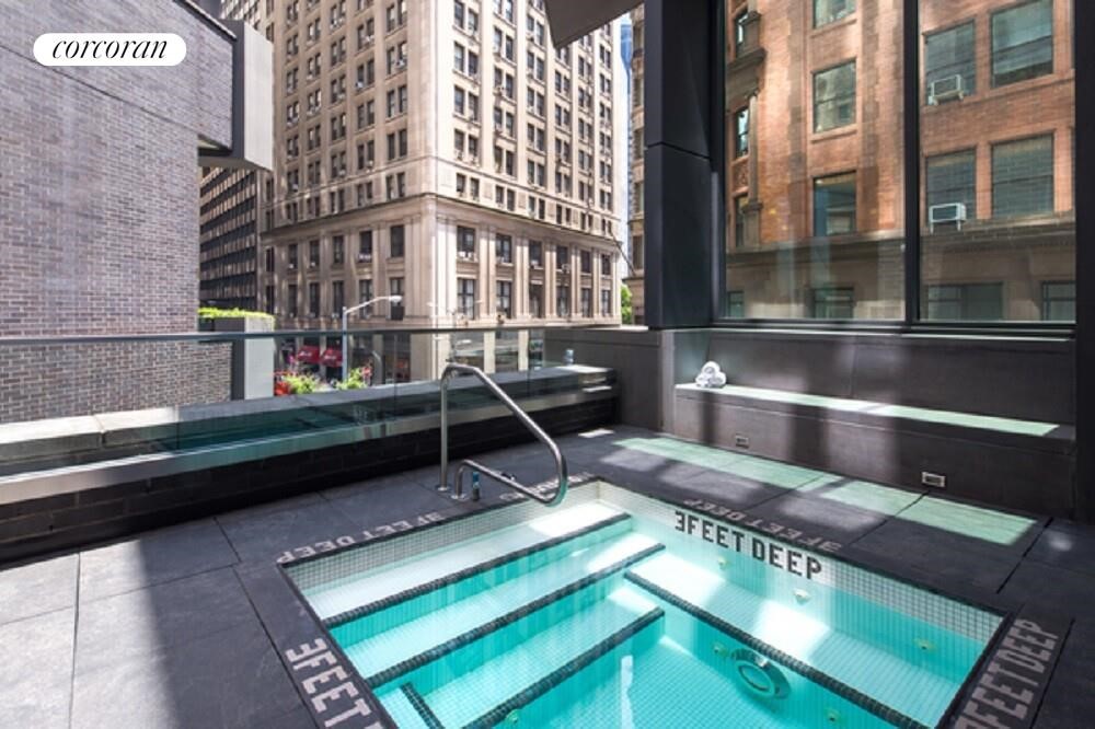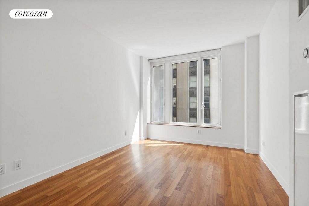 Great central location this contemporary residence features 10 feet ceiling heights, warm Burmese Teak flooring throughout, a built-in home office, washer/dryer, multi-zone climate control system providing heat and AC all year round, Top-of-the-line finishes include an open chef's kitchen with custom designed white lacquer and stainless steel cabinetry, Ceaser stone counter and backsplash and Blanco stainless steel sink with Vola satin nickel faucets, a Sub Zero refrigerator, and Miele dishwasher, gas range and oven. The apartment features California closets and a rental tenant thru July of 2026 paying a rent of $4995. Unrivaled amenities include a resident's penthouse lounge with wraparound landscaped terrace, playground, professional screening room, covered dog run, onsite valet parking. The building also provides Abigail Michael's concierge services. Nearly 20,000 square feet of space is dedicated to fitness and exercise including a natural light filled fitness center with state-of-the-art strength and cardio equipment, indoor 50' heated saltwater lap pool, outdoor hot tub, sauna and steam rooms, outdoor basketball, indoor squash court and yoga studio. 15 William Street is a 47-story luxury high-rise in the heart of the Financial Area, surrounded by architectural jewels of the past centuries, chic shopping destinations, sumptuous dining, and all that Downtown's most exciting neighborhood has to offer. The building is close to many transit options: 15, rue William #10G