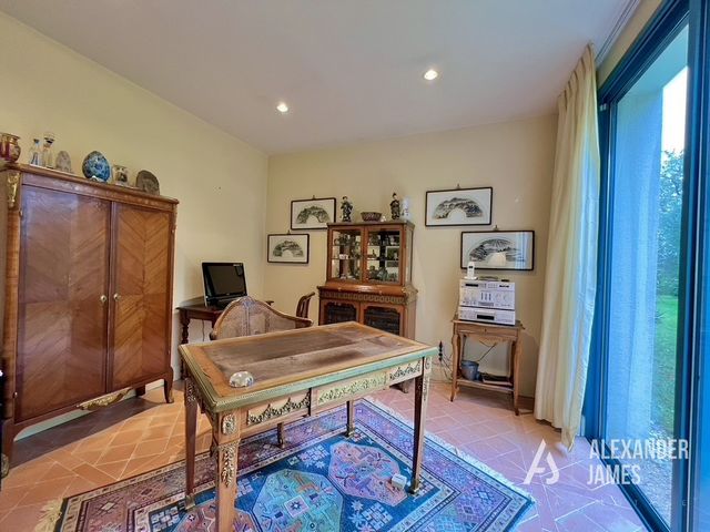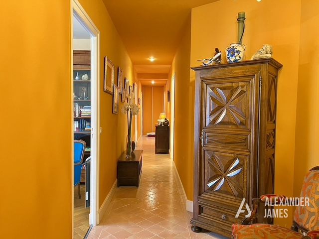 Le salon, spacieux et majestueux, intègre une salle à manger et un espace bureau/bibliothèque, idéal pour recevoir. Un couloir dessert trois chambres, chacune avec sa propre salle d’eau. Le couloir dessert également un dressing et une buanderie. Une grande salle de réception avec deux accès, dont l'un par l'extérieur, pourrait être transformée en studio/gîte ou pour une activité libérale (sous réserve des autorisations nécessaires).