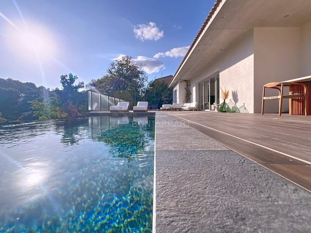- Terrace Voir plus Voir moins Le Bon'appart est heureux de vous proposer à la vente cette magnifique villa à l'architecure contemporaine et épurée d’environ 190m2 avec sa piscine privative. Nichée dans un environnement paisible et verdoyant, elle vous séduira par ses volumes généreux, ses prestations de qualité et son cadre de vie privilégié.