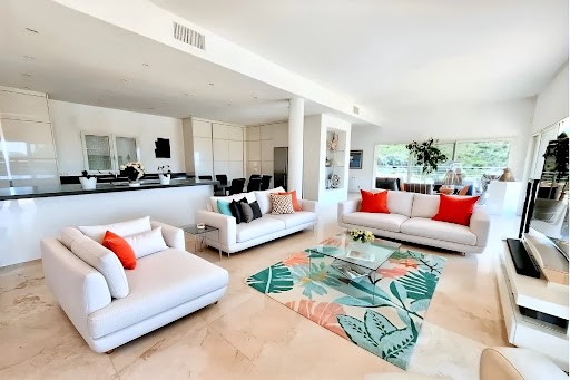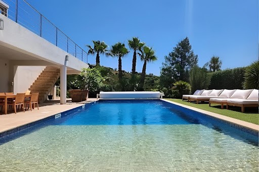 Conçue dans un esprit résolument moderne, la villa s'articule autour d'espaces baignés de lumière, avec de grandes baies vitrées ouvrant sur les terrasses, la mer et le parc paysager. Les lignes épurées, les matériaux contemporains et les finitions soignées confèrent à l'ensemble une atmosphère chic et apaisante. Des volumes généreux et fonctionnels