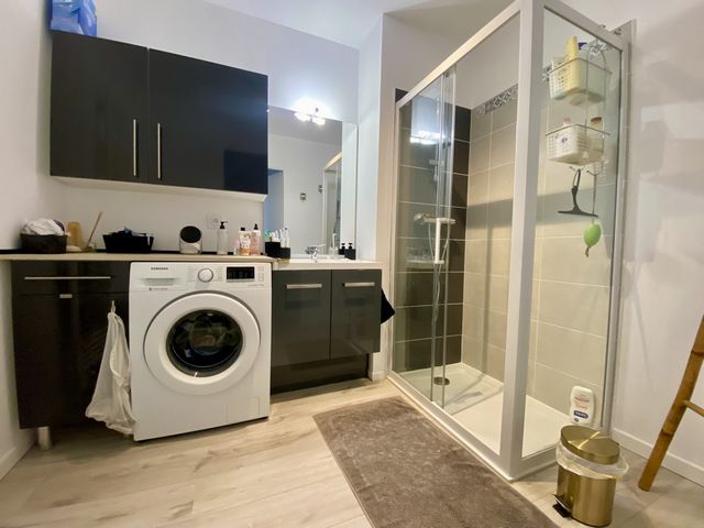 Il comprend une entrée, une pièce de vie avec cuisine ouverte aménagée et cellier attenant, un espace nuit composé de deux chambres et d'une salle d'eau. Toutes les pièces sont équipées de placards et un débarras privatif sur le palier complète l'ensemble.