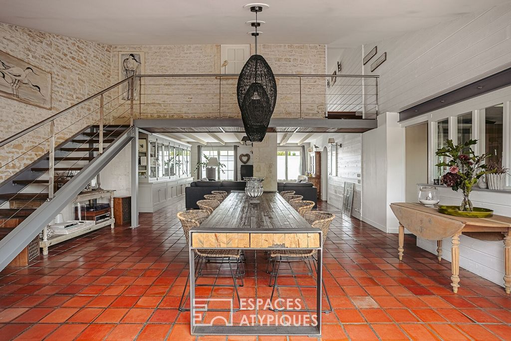 - Terrace Voir plus Voir moins EXCLUSIVITE ESPACES ATYPIQUES Nichée au coeur du village de Charron, cette bâtisse entièrement rénovée déploie une atmosphère unique, où le cachet de l'ancien et le confort contemporain dialoguent avec brio. Edifiée sur une parcelle intimiste, elle s'articule autour de sa piscine et de ses terrasses en bois, promesses de moments privilégiés. L'entrée intime et fonctionnelle dévoile dans son prolongement le volume généreux et décloisonné de la pièce de vie de 70 m2. Ici, le sol en tomettes authentiques répond aux murs en pierre, créant une ambiance chaleureuse et cosy. Dans son prolongement, la cuisine haut de gamme séparée par une verrière, invite à se mettre aux fourneaux. Conçue pour une vie de plain-pied, la maison accueille au rez-de-chaussée une véritable suite parentale, pensée comme un cocon intime avec son dressing et sa salle d'eau privative, offrant un accès direct sur l'extérieur. A l'étage, l'espace nuit dispose de trois chambres et d'un dressing additionnel, qui pourrait aisément accueillir une future salle d'eau (la salle de bains dédiée aux enfants se situant au rez-de-chaussée). L'extérieur est une véritable invitation à la détente, à l'abri des regards. Un garage et une dépendance isolée qui ravira les bricoleurs complètent cet ensemble de caractère et de charme. Idéalement située, la maison profite du dynamisme du village avec un accès immédiat à toutes les commodités : commerces, écoles et services de santé, tout en préservant une quiétude absolue. Plus qu'une maison, c'est un lieu de vie singulier, un bien atypique où l'harmonie entre histoire et modernité a été parfaitement orchestrée. Une découverte s'impose pour en saisir toute l'âme. CLASSE ENERGIE : D / CLASSE CLIMAT : D. Montant moyen estimé des dépenses annuelles d'énergie pour un usage standard, établi à partir des prix de l'énergie moyen entre 2021 et 2023 : entre 3660 euros à 5000 euros. Reportage photo complet sur notre site Espaces Atypiques Charente-Maritime. Contact : Astrid CAURIT ... Agent commercial (EI) - RSAC La Rochelle n 793067059 Astrid CAURIT (EI) Agent Commercial - Numéro RSAC : 793 067 059 - La Rochelle.