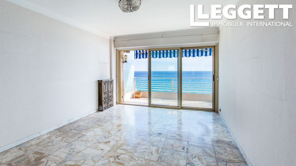 A24614OVI06 - Menton - Promenade du soleil. On the seafront overlooking the Mediterranean from Italy to Roquebrune Cap Martin. A very bright 2 bedrooms apartment. Entrance, living room with terrace, 2 bedrooms, kitchen, bathroom, toilets, balcony. The apartment will need a refurbishment to become the perfect holiday home on the French riviera. Sold with a cellar. Private parking space available for 25 000€.Information about risks to which this property is exposed is available on the Géorisques website : https:// ...