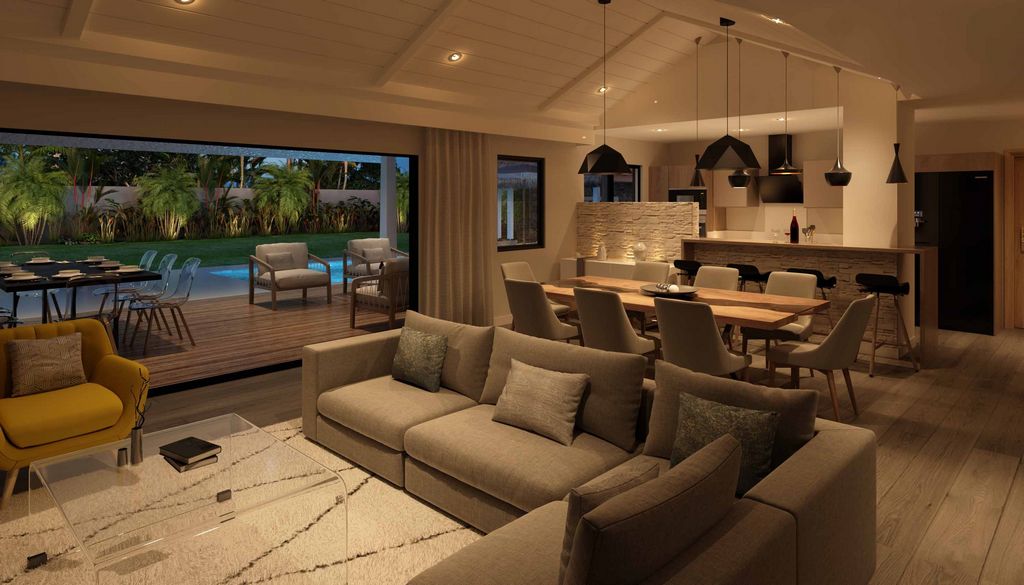 - Washing Machine Nestenn proposes this 4-bed contemporary villa in a sought after domain in Cap Malheureux. This contemporary villa of 285m² offers a large open space comprising of a kitchen of 12m² giving onto the living room and dinning room of 48m²- all open on the covered terrace and pool. The covered terrace has a view of the pool and is a great place to spend some quality time. A kiosk and pool house is also part of the pool area. The master bedroom of 37m² has an en-suite bathroom, a dressing and an outdoor shower of 6m². The villa benefits also of 1 en-suite bedroom of 35m² and the 2 other bedrooms share a common bathroom. A study, laundry room, a store, a pantry and a parking space for 2 car completes this property. Located along the north coast of Mauritius, this project covers an area of over 22 hectares and is surrounded by an environmentally friendly environment with several varieties of plants and trees and a 1.5 km fresh water canal. The project also includes a commercial village accessible by your own kayak as well as 24/7 medical assistance, a pharmacy, a mini supermarket, a bakery, various shops, a swimming pool, a gym, a concierge, a kids club and a spa. Residence Permit upon acquisition. NO AGENCY FEE. PDS SCHEME. OFF-PLAN PURCHASE. ACCESSIBLE TO FOREIGNERS.