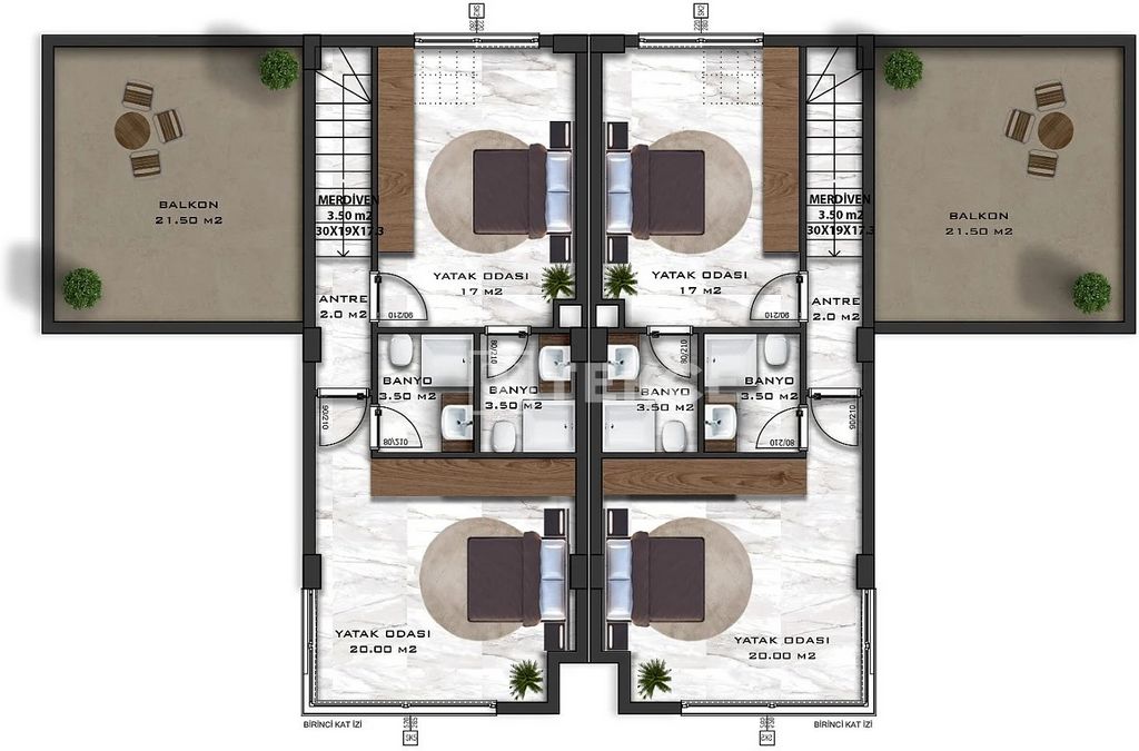 - Terrace Exclusive Design Villas με θέα στη θάλασσα - Alanya Engikum Οι βίλες βρίσκονται στην ταχέως αναπτυσσόμενη περιοχή Incecum της Alanya. Γνωστό για την όμορφη θάλασσα, τις αποκλειστικές περιοχές και τις εκπληκτικές παραλίες, το ENGIKUM είναι ένας δημοφιλής προορισμός διακοπών. Εκτός από την προσέλκυση ντόπιων και διεθνών τουριστών με τη φυσική ομορφιά της, η περιοχή είναι επίσης μια περιζήτητη τοποθεσία για επενδυτές. ... απέχουν 3 χλμ από τη θάλασσα, 4,8 χλμ από το φυσικό πάρκο Icicum, 9 χλμ από το Sea Dolphin Park, 27 χλμ από το κέντρο της Αλάνια, 65 χλμ από το αεροδρόμιο Gazipaşa και 87,4 χλμ από το αεροδρόμιο της Αττάλειας. Οι 24 ημιανεξάρτητες βίλες είναι χτισμένες σε οικόπεδο 7.000μ², καθεμία από τις οποίες διαθέτει δύο και 3 ορόφους. Οι βίλες περιλαμβάνουν ιδιωτική πισίνα, ιδιωτικό κήπο, χώρο στάθμευσης αυτοκινήτων, γεννήτρια και κάμερες ασφαλείας. Οι βίλες είναι εξοπλισμένες με ντουλάπια μπάνιου και κουζίνας, κεντρικό δορυφορικό σύστημα και περσίδες. Επιπλέον, θα παραδοθεί με υλικά διακόσμησης υψηλής ποιότητας, συμπεριλαμβανομένων ξύλινων και κεραμικών φινιρισμάτων.