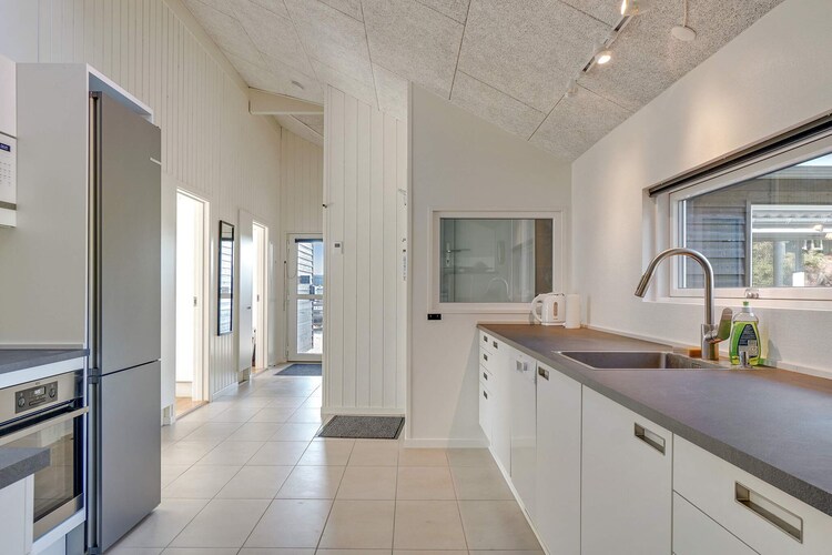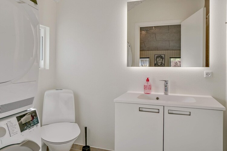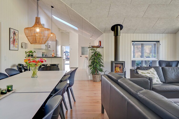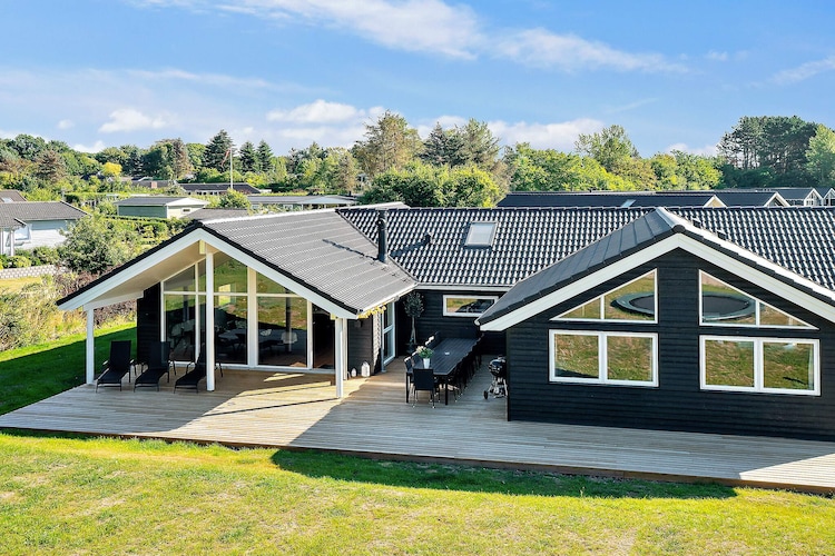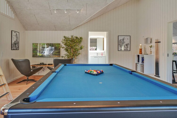 Dit ruime vakantiehuis bij Vejby Strand biedt plaats aan maximaal 14 personen en is volledig uitgerust met een zwembad, whirlpool en sauna. In het helder en huiselijk ingerichte interieur kan het hele gezin ontspannen vakantiedagen doorbrengen. In het aantrekkelijke zwembadgedeelte van het huis is er een 15 m² groot zwembad, dat is voorzien van een trap en zeker tot grote vreugde van de kinderen ook met een glijbaan. Voor de fitness is er een zwemtrainer, en voor ontspannende uren is er een whirlpool voor maximaal zes personen en een sauna voor maximaal drie personen beschikbaar. De 14 slaapplaatsen zijn verdeeld over vijf slaapkamers en een vide onder het schuine dak met vier slaapplaatsen voor kinderen en jongeren. Alle bedden in de slaapkamers kunnen zowel als tweepersoons- als eenpersoonsbedden worden gebruikt. De grote woonruimte biedt veel plaats voor gezamenlijke activiteiten en gezellige uren aan de eettafel of voor de houtkachel. In open verbinding met de woonruimte vindt u de goed uitgeruste keuken met onder andere twee ovens, van waaruit u het gebeuren in de woonruimte kunt volgen. Naast de woonruimte is er in de zogenaamde activiteitsruimte voor het vrijetijdsplezier een gecombineerde biljarttafel/tafeltennistafel, evenals darts en een Playstation4 beschikbaar. Beide badkamers van het huis zijn uitgerust met aangename vloerverwarming, net als de rest van het huis. De inrichting is over het algemeen helder en modern en straalt een aantrekkelijke woonomgeving uit. Het vakantiehuis beschikt over een op het zuiden gerichte houten terras met tuinmeubelen en een barbecue. Hier vindt u ook een buitenkraan. Het terras is gedeeltelijk overdekt, zodat u op warme dagen een zonnige of schaduwrijke zitplaats kunt kiezen. In de tuin zijn er enkele speeltoestellen voor de kinderen: een ingelaten tuintrampoline (gebruik op eigen risico), een speeltoestel met schommel en een zandbak. Aan de buitenmuur van het huis vindt u ook twee CEE-aansluitingen voor elektrische auto’s. Geen verhuur aan jeugdgroepen gewenst!