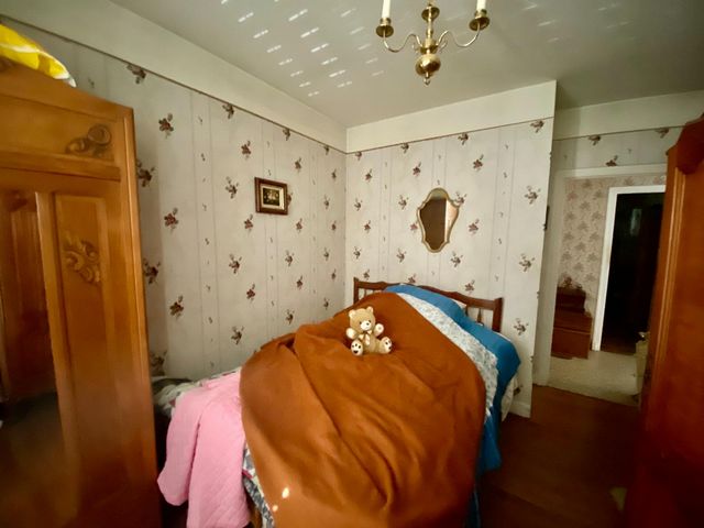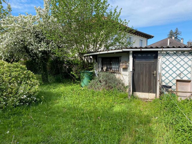 -1er étage, un dégagement, un séjour et deux chambres avec accès au balcon, une cuisine, un SDB, un WC et une troisième chambre.À l’extérieur, vous trouverez également un second garage ainsi qu’un abri de jardin.Tout à l'égout.