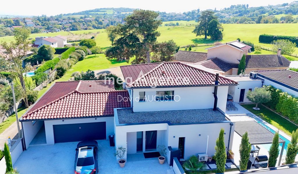 Honoraires charge vendeurContactez votre consultant megAgence : David AUGUSTO, Tél. : 06 17 70 31 03, - EI - Agent commercial immatriculé au RSAC de LYON sous le numéro 478 711 740 Voir plus Voir moins Très beau cadre à Lentilly, secteur très calme et sans nuisances, pour cette maison d'architecte contemporaine aux prestations de qualité, sur son terrain de 611m2 entièrement clos et entretenu, avec piscine chauffée 9x3,50m, pool house, superbe terrasse sur jardin orientée Sud, pergola bioclimatique. La maison se compose d'un hall d'entrée avec placard de rangement, d'un vaste espace de vie éclairé d'environ 70m2 comprenant une cuisine ouverte sur séjour, d'une suite parentale avec dressing et salle d'eau, d'une buanderie, d'un garage double de 42m2, d'un studio indépendant double accès de 31m2 avec salle d'eau, ouvert sur un patio exposé Est. A l'étage, 3 généreuses chambres avec vue sur la campagne Lentilloise, placards dans chaque chambre, une salle de bains et un wc. Les prestations plus: Vide sanitaire complet, Chauffage au sol et radiateurs à l'étage par PAC, climatisation séjour/studio/étage, poêle à bois, aspiration centralisée, menuiseries aluminium, volets roulants motorisés, Fibre... Centre village, gare TER à 10', TCL 98 à 500m. A voir absolument!Les informations sur les risques auxquels ce bien est exposé sont disponibles sur le site Géorisques : www.georisques.gouv.fr