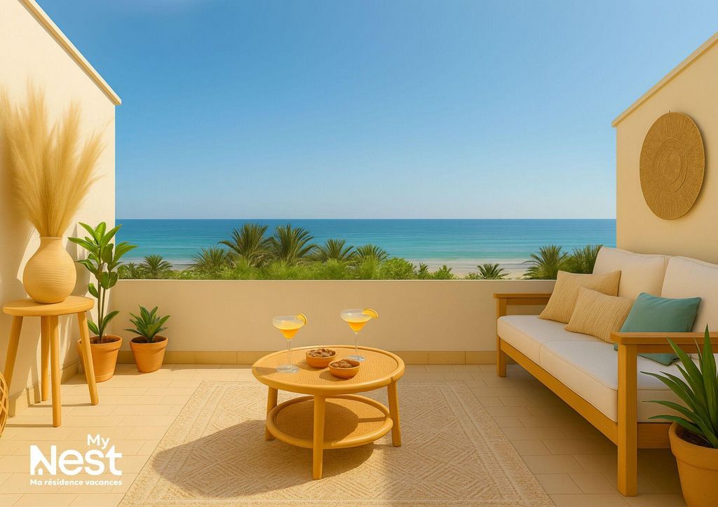 Depuis le dernier étage, vous contemplez le bleu infini. D'un côté, la marina paisible ; de l'autre, le Lido et l'horizon marin. Lumière, calme, soleil et mer à perte de vue.