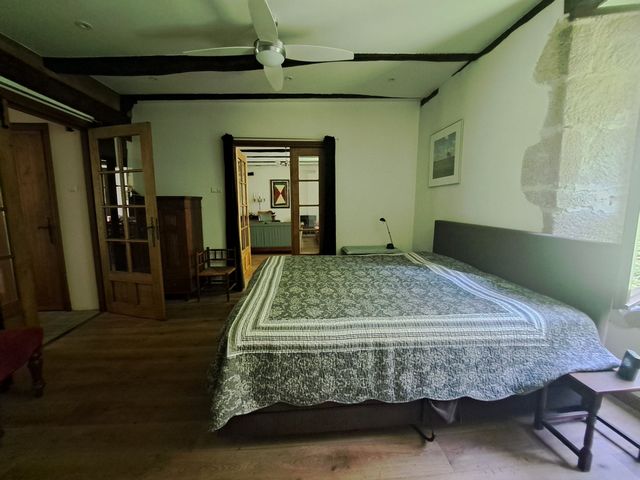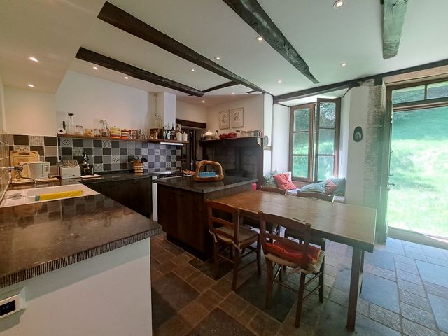 The old ROCHE CANILLAC mill is a real gem located in a place that invites you to daydream to the sound of the river. This traditional stone mill is made up of a very beautiful kitchen fitted and equipped with a stove and an island with underfloor heating. A very pleasant dining room followed by a cozy living room with its wood stove. As an extension, a master bedroom with adjoining bathroom. Upstairs, a hall serves 4 bedrooms, each with a bathroom. A large basement still housing the remains of the mill. A barn/workshop of approximately 53 m² adjoining the mill. On the edge, the Doustre, a river which flows into the Dordogne and supplied the old mill.