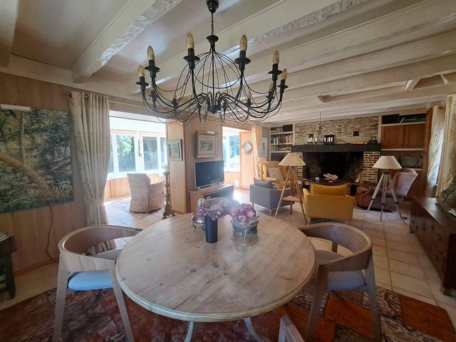 Havre de paix au coeur de la nature La maison d'habitation en parfait état, se compose d'une entrée avec wc indépendant, une belle cuisine très agréable grâce à sa hauteur sous plafond et lumineuse par sa baie vitrée donnant sur l'agéable terrasse du jardin. Au dessus de la cuisine, en mezzanine, le coin cosy bibliothèque / bureau pour les soirées d'hiver. Un séjour chaleureux avec sa cheminée, baigné de lumière par sa véranda. circulaire pour profiter pleinement de la vue de la campagnhe hiver comme été. Une charmante chambre avec sa salle de bains indépendante et son incroyable dressing ! A l'extérieur: Le bel espace de la grange donne accés à une buanderie, une chambre et sa salle d'eau indépendante et a été tranformé en véritable atelier d'artiste avec mezzanine. Le jardin arboré appelle à la pleinitude avec entre autre l'accés à sa terrasse et à sa piscine pour se rafraichir des chaleurs de l'été. Un abri pour le stockage du bois et un abri pour voiture se situent sur le côté de la maison. Distance: 5mn de Pompadour Les informations sur les risques auxquels ce bien est exposé sont disponibles sur le site Géorisques : www.georisques.gouv.fr »
