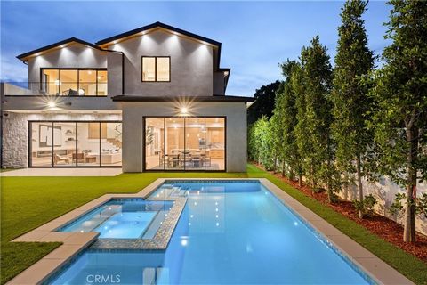 Bienvenue au 5003 Mammoth Avenue, un Cape Cod Modern de 6 chambres et 7 salles de bain dans l’un des quartiers les plus convoités de Sherman Oaks. Situé derrière des portes sur un généreux terrain d’angle, ce domaine récemment construit s’étend sur environ 4 200 pieds carrés, selon l’évaluation du propriétaire. La propriété allie un design élégant mais raffiné à des équipements de pointe, y compris une unité d’habitation accessoire (ADU) soigneusement conçue, parfaite pour les invités, la famille élargie ou un studio privé. Dès son arrivée, la maison impressionne par son plan d’étage à aire ouverte, baigné de lumière naturelle. Le salon formel présente une élégante cheminée et s’ouvre sur un patio couvert avec un foyer, idéal pour le café du matin ou les réunions au coucher du soleil. La salle à manger est rehaussée par une vitrine à vin personnalisée avec un éclairage d’accentuation, ajoutant une sensation de sophistication et de chaleur. Le cœur de la maison est l’étonnante cuisine du chef, où aucun détail n’a été négligé. Des comptoirs en quartz Cambria, des armoires sur mesure, des appareils électroménagers en acier inoxydable et un îlot en cascade avec table de petit-déjeuner intégrée en chêne blanc créent un espace aussi fonctionnel que beau. Un grand garde-manger offre un espace de rangement supplémentaire, tandis que la salle familiale attenante dispose d’un foyer recouvert de porcelaine, d’éléments intégrés sur mesure et de portes coulissantes de style Fleetwood qui s’ouvrent sur la cour arrière, créant ainsi un flux intérieur-extérieur sans faille. Aventurez-vous à l’extérieur dans une oasis privée dotée d’une piscine étincelante et d’un spa, d’un ADU avec kitchenette et salle de bain, et d’une cuisine extérieure complète avec barbecue et bar, le tout encadré par une pelouse en gazon facile d’entretien et des accents de brique. Montez dans la suite principale à l’étage pour trouver une véritable retraite, dotée de hauts plafonds voûtés et de poutres apparentes, d’une cheminée électrique et d’un balcon privé. Sa salle de bains attenante d’inspiration spa est dotée d’un carrelage exquis, de deux vasques, d’une baignoire et d’un grand dressing. Ce qui distingue vraiment cette maison, ce sont ses finitions sur mesure et ses systèmes de pointe. De l’intégration de la maison intelligente Control 4 et des haut-parleurs surround aux boiseries personnalisées et à la sécurité renforcée avec des caméras et un système d’alarme, chaque détail a été soigneusement conçu pour une vie de luxe moderne. Situé à quelques minutes du Westfield Fashion Square de Sherman Oaks, des restaurants de Ventura Boulevard et d’un accès facile à l’autoroute, ... offre un mélange unique de style, de confort et de commodité. Contactez MJ pour une visite.